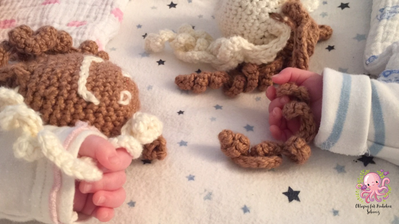 Bunte, gehäkelte Oktopusse, die an die Nabelschnur der Mutter erinnern sollen und so den zu früh geborenen Babys helfen. Gehäkelt werden sie von Freiwilligen, gesammelt und kontrolliert vom Verein «Oktopus für Frühchen». Wir sprachen mit der Präsidentin Michaela Schönauer über das Projekt und die Wirkung der Oktopusse.
